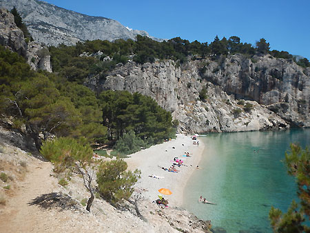 Am südlichen Ende des Hafens von Makarska gelangt man in den schönen, von Pinien bewachsenen Bilder zum Vergrößern bitte jeweils anklicken! |
