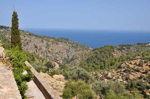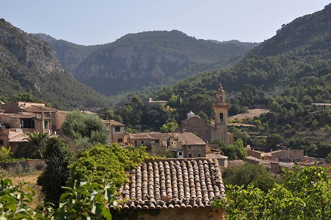 Entlang der gesamten Nordwestküste erstreckt sich das rund 90 Kilometer lange und bis über 1.000 m aufragende Tramuntana-Gebirge. Die Region ist vergleichsweise spärlich besiedelt und bietet viele Wandermöglichkeiten und hübsche Dörfer zum Verweilen. Das wohl am meisten besuchte ist Valldemossa, bekannt geworden vor allem durch die Erinnerungen der französischen Autorin George Sand an einen Winter auf Mallorca zusammen mit ihrem damaligen Gefährten Frédéric Chopin im Jahre1838/39. Doch auch ohne diesen Mythos ist Valldemossa ein hübsches Bergdorf mit typischer mittelalterlicher Architektur. Neben den vielen Blumen in der Unterstadt fallen vor allem die bunten Kachelbilder auf, die praktisch jeden Hauseingang des Ortes zieren. Sie zeigen die in Valldemossa geborene Inselheilige Santa Catalina Thomàs.