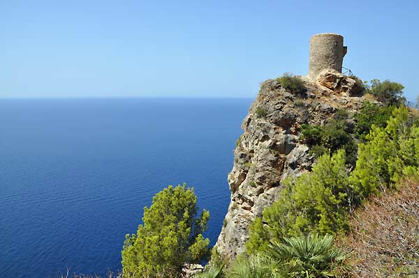 Zurück nach Peguera fuhren wir die wunderschöne Küstenstraße gen Süden über die Dörfer Banyalbufar, Estellencs, Andratx und Port d'Antratx. Ein besonders netter Aussichtspunkt auf dieser Strecke war der Torre de Ses Animes, der "Turm der Geister" bei Estellencs, der im 16. Jahrhundert zum Schutz vor der Gefahr durch Piraten erbaut wurde. |