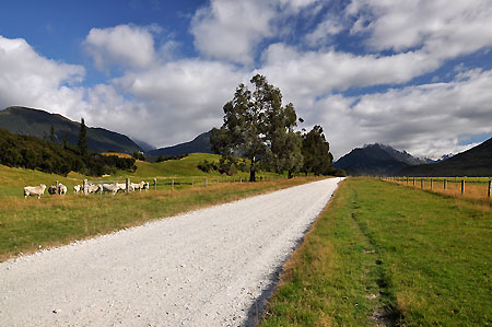 Die Glenorchy-Paradise-Road ist zwar erstmal noch asphaltiert, doch dieser Luxus währt nur Bilder zum Vergrößern bitte jeweils anklicken! |