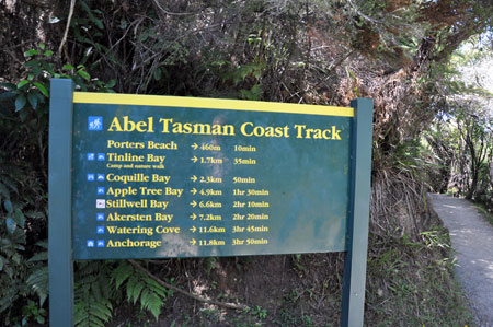 Der Abel Tasman Track ist insgesamt 51 km lang und wer ihn in seiner Gänze gehen will, |