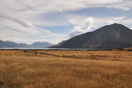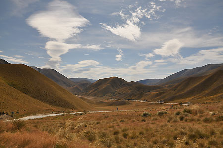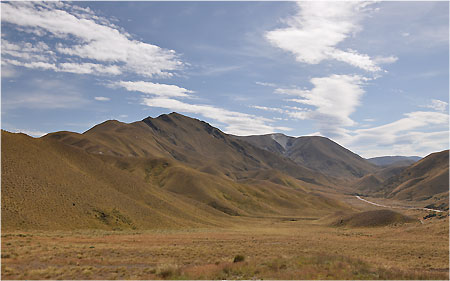 Der Mackenzie District mit seinen weiten Graslandschaften, sanft gewellten Hügeln und |