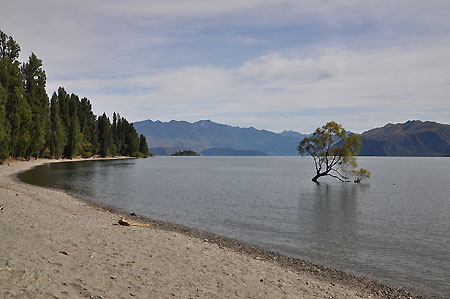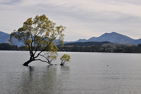 Beliebtestes Fotomotiv am See ist der angeblich weltbekannte, im Wasser stehende „Wanaka Tree“, von dem wir zwar bis dato noch nie etwas gehört hatten, aber wenn man schon mal dort ist, geht man natürlich auch neugierig hin. Allerdings hat der Baum mittlerweile etwas gelitten unter Leuten, die unbedingt ein Bild von sich als Affen im Baum brauchen. Sehr schade. Leider war es beide Male, die wir dort waren, gerade ziemlich bewölkt, von daher lediglich etwas trübe Bilder. Von hier aus kann man noch weiter am Ufer spazieren, Geocaches suchen, im See baden usw. Das Wasser ist zwar frisch, aber durchaus schwimmtauglich und wunderbar klar und sauber. |