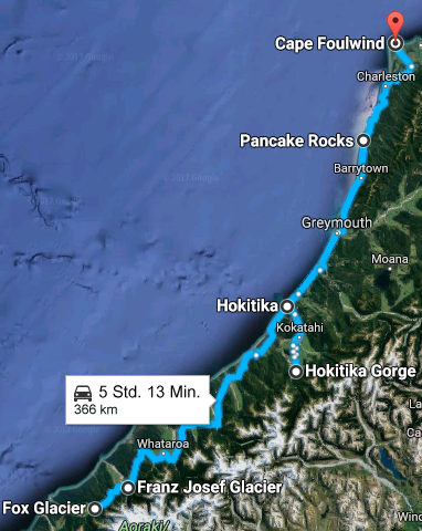 Weiteres Ziel an diesem Tag war das bei Westport gelegene Cape Foulwind mit seiner dort ansässigen Seebärenkolonie, zu welcher man nach einem kurzem Spaziergang gelangt. Da wir als nächstes weiter nach Motueka fahren wollten, war dies dann leider auch schon unser Abschied von der Westküste, für die wir gerne mehr Zeit gehabt hätten. |
