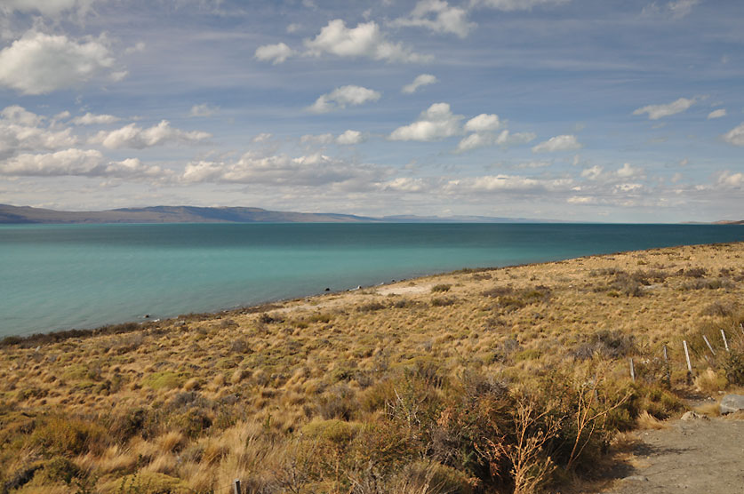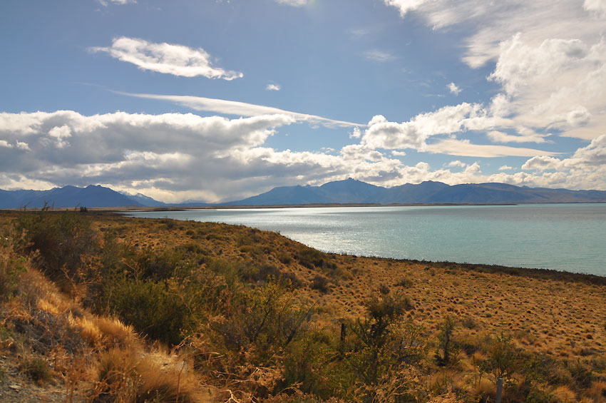 weite Landschaft und entlang des türkisfarbenen Lago Argentino