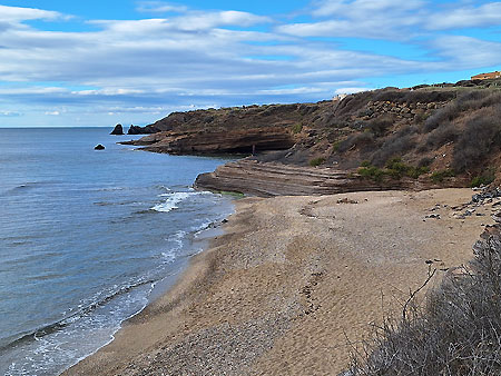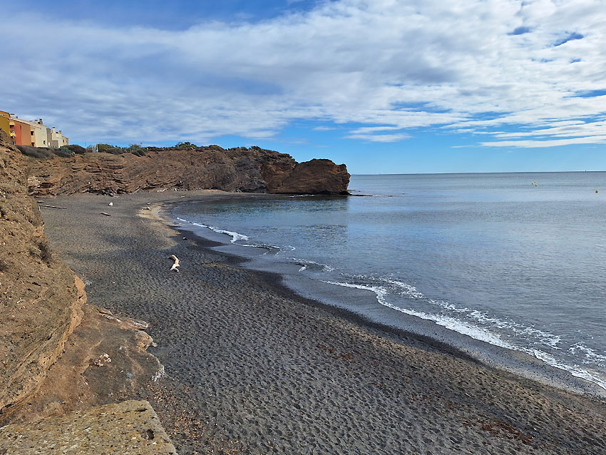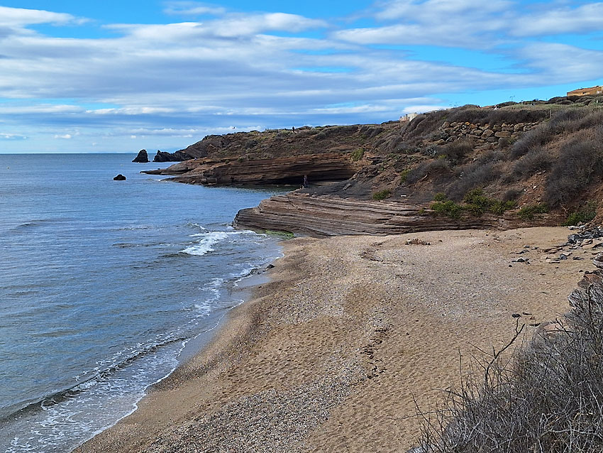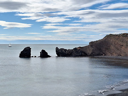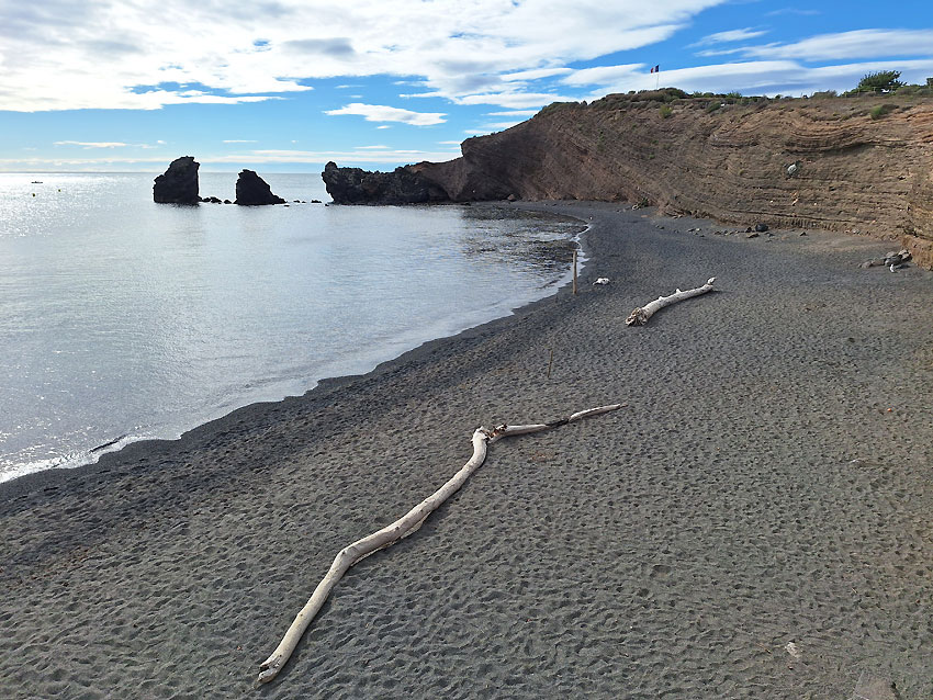 grobkörnigerer Strand aus Vulkansand, ähnlich den Stränden auf Lanzarote.