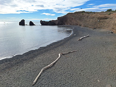 direkt am Kap. Dieser ist kein heller, feiner Sandstrand, sondern ein dunkler,
