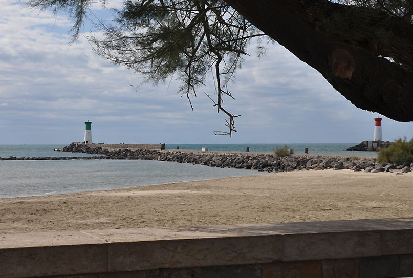 Hérault-Mündung und die Leuchttürme von Grau d'Agde |