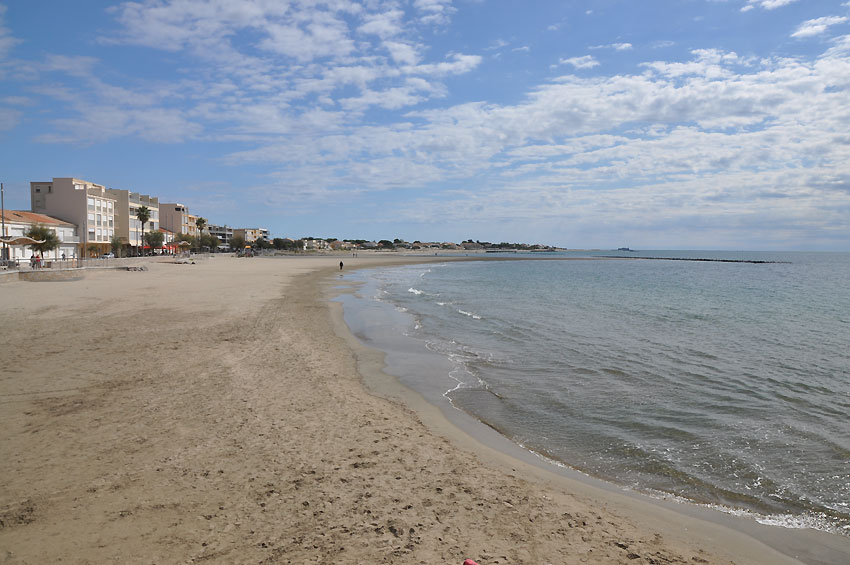 und eine Strandpromenade mit weniger touristischer Infrastruktur als in Cap d'Agde.