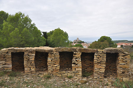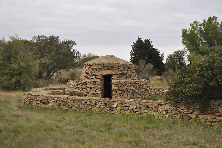 (einstiger Unterschlupf der Hirten aus Trockenstein), eine Noria (Maschine zum Heben von Wasser),