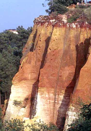 Weitere, deutlich weniger frequentierte Ockerbrüche als in Roussillon, gibt es einige Kilometer südlich des Dorfes Rustrel zu sehen, vermarktet unter dem Namen "Le Colorado provençal de Rustrel". Hier unternahmen wir in der sommerlichen Gluthitze eine kleine Wanderung: |